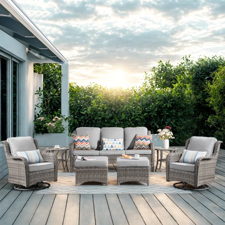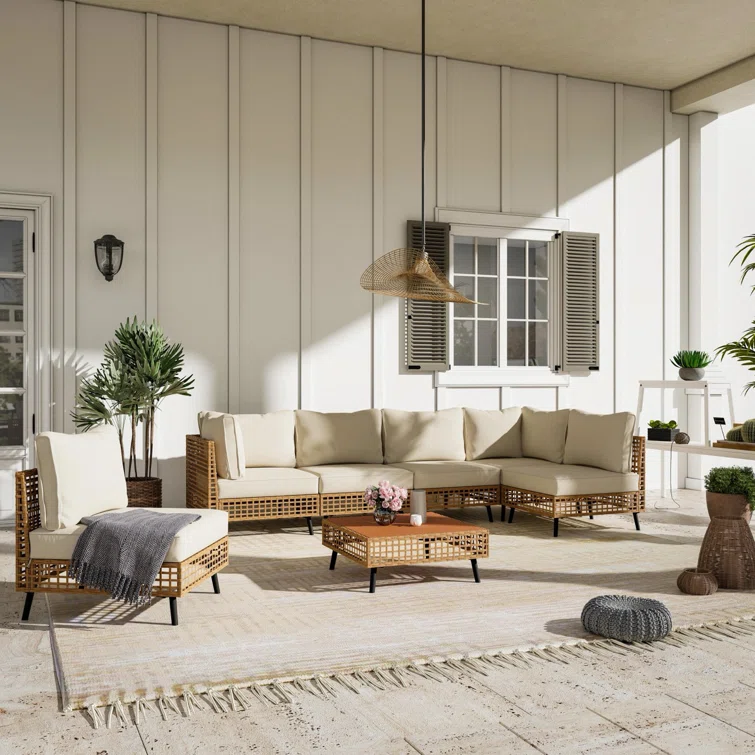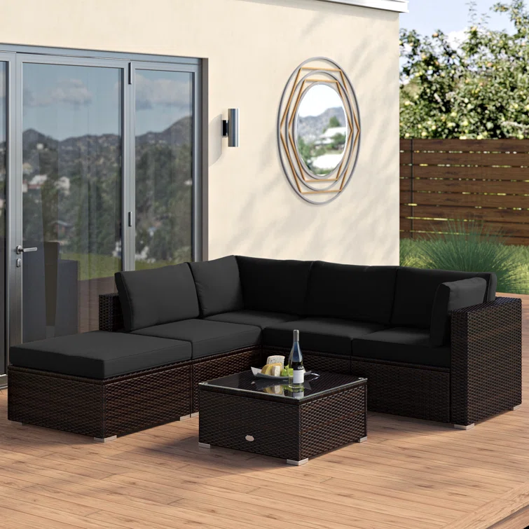 Meredithe Half-Moon 6 - Person Fully Assembled Curved Patio Conversation Set With Coffee Table & Side Table