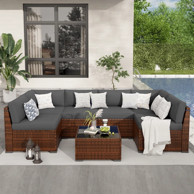 7 Piece Rattan Sectional Seating Group with Cushions