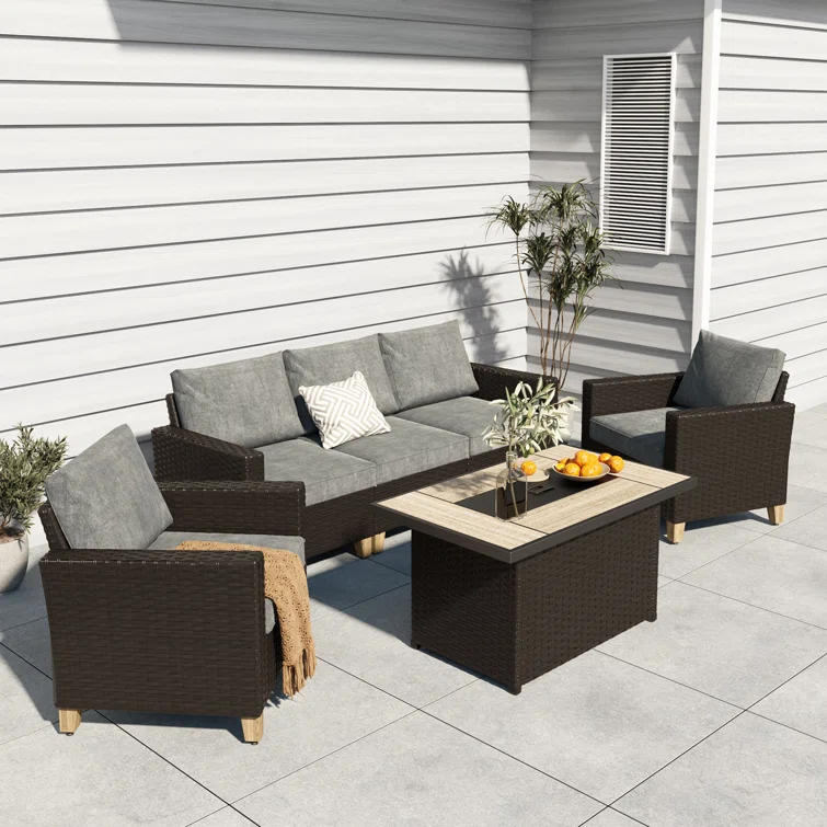 6-Pieces Wicker Conversation Set With Fire Pit Table