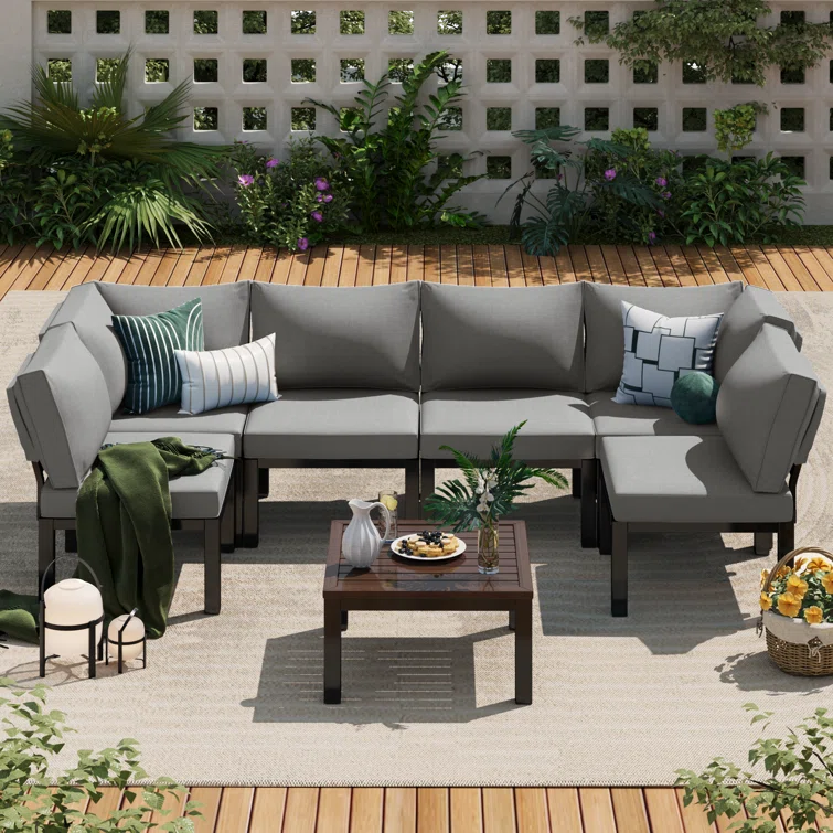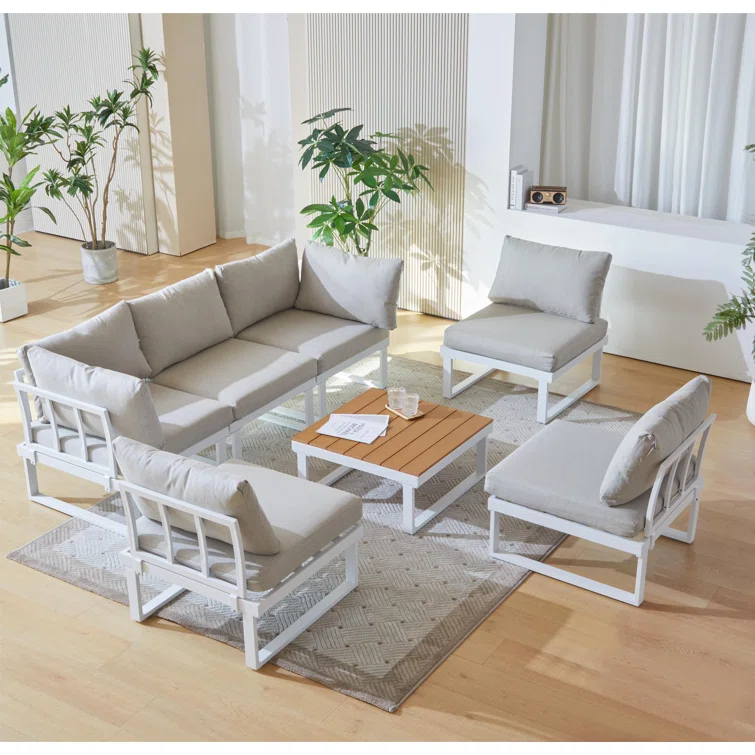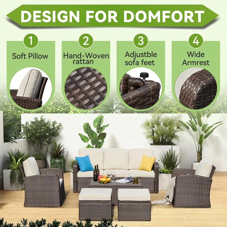 6 Pieces Patio Furniture Set Sectional Wicker Sofa Outdoor Conversation Sets With Table And Ottomans For Garden, Poolside, Backyard