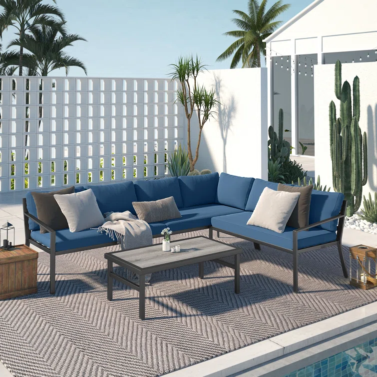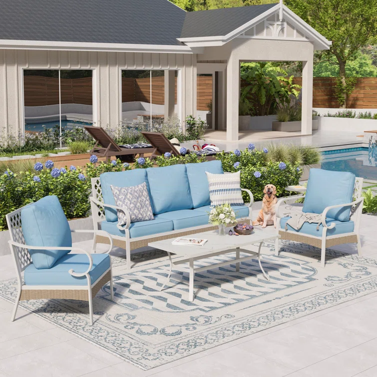 4 Pieces Outdoor Five-Seater Conversation Sets With Grey Cushions