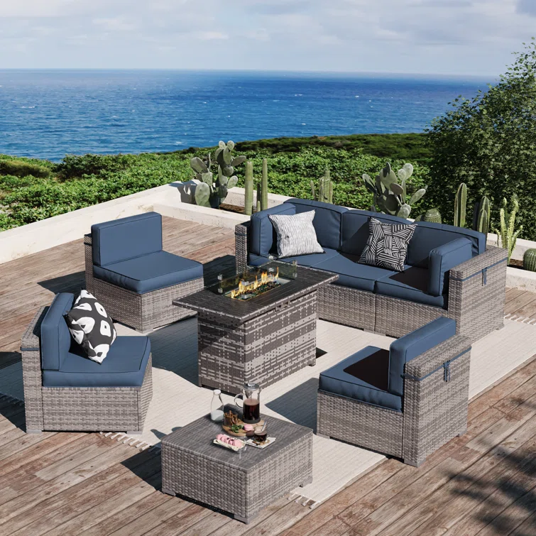 Asfand 5-7- Person Patio Conversation Set with Optional Ottoman