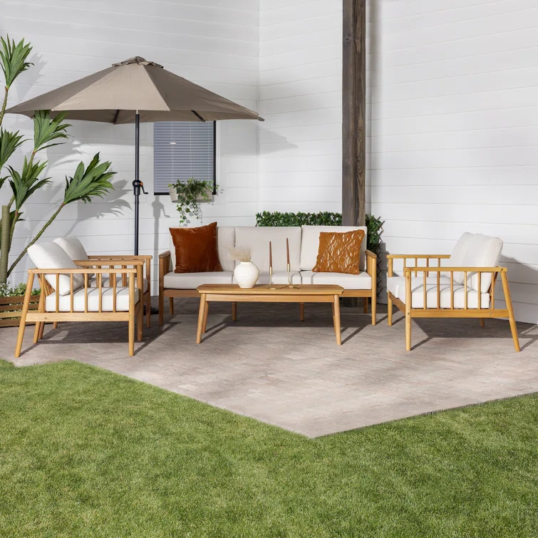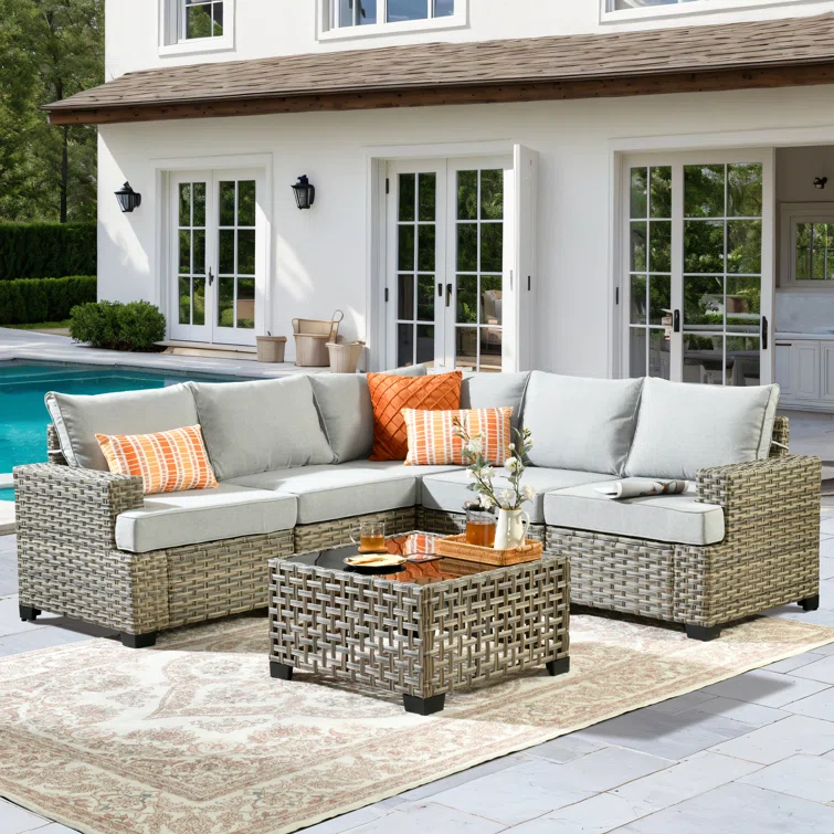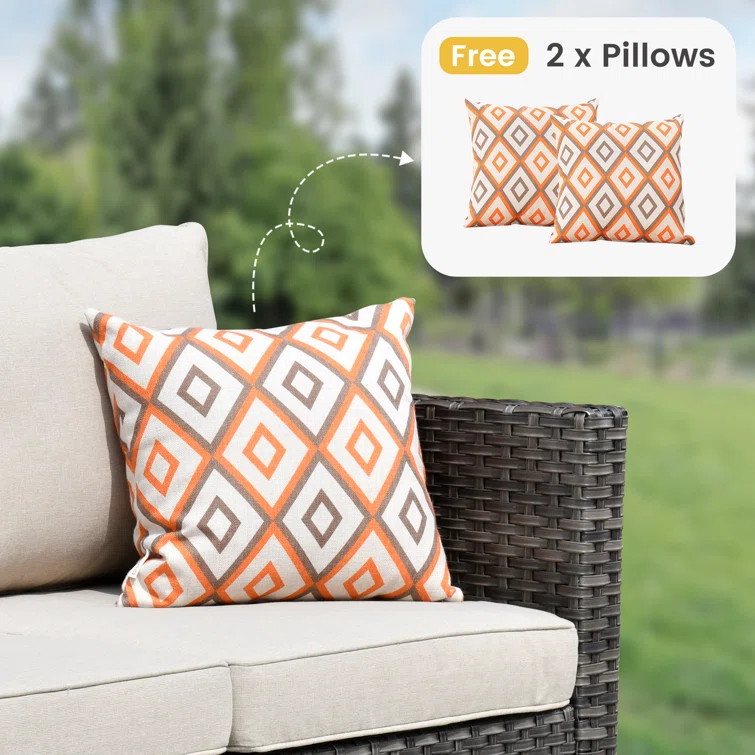 Quadrell 6 - Person Outdoor Wicker Patio Conversation Furniture Set with Optional Fire Pit Table