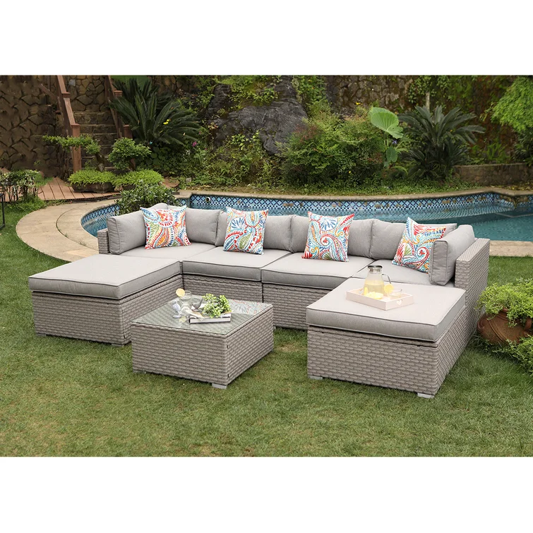 Gilemette 8 Pieces Outdoor Patio Aluminum Sectional Set with Cushions and Table