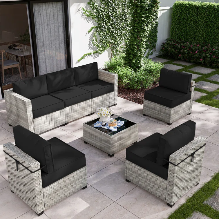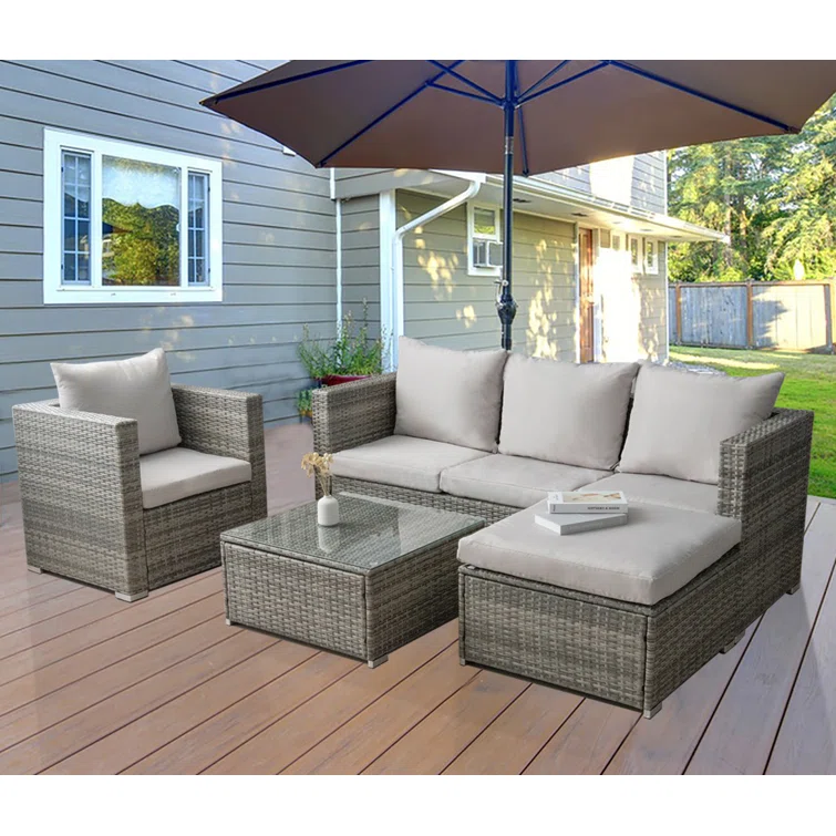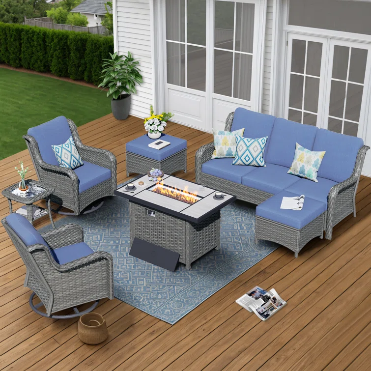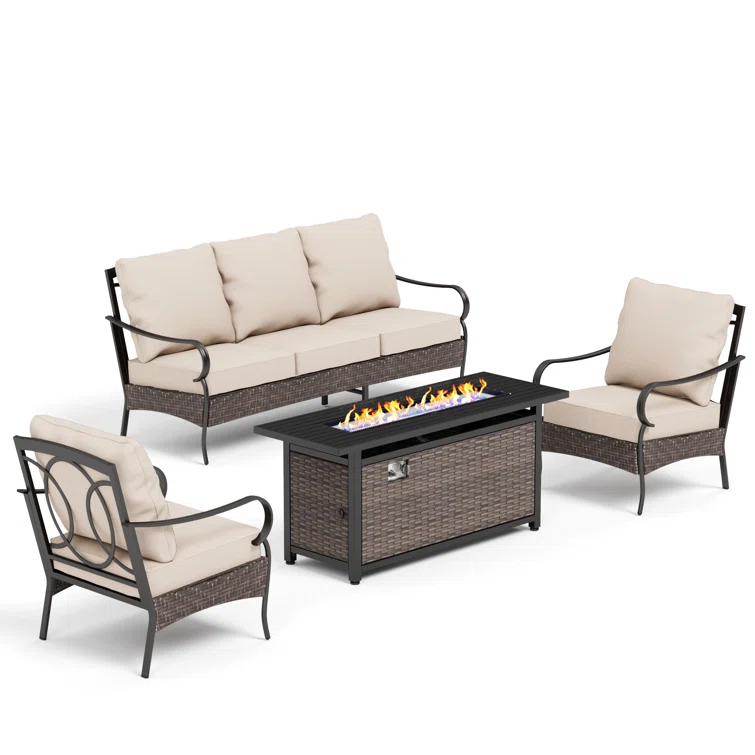 Arwand Outdoor Patio Conversation Set with Fire Pit Table & Optional Ottomans