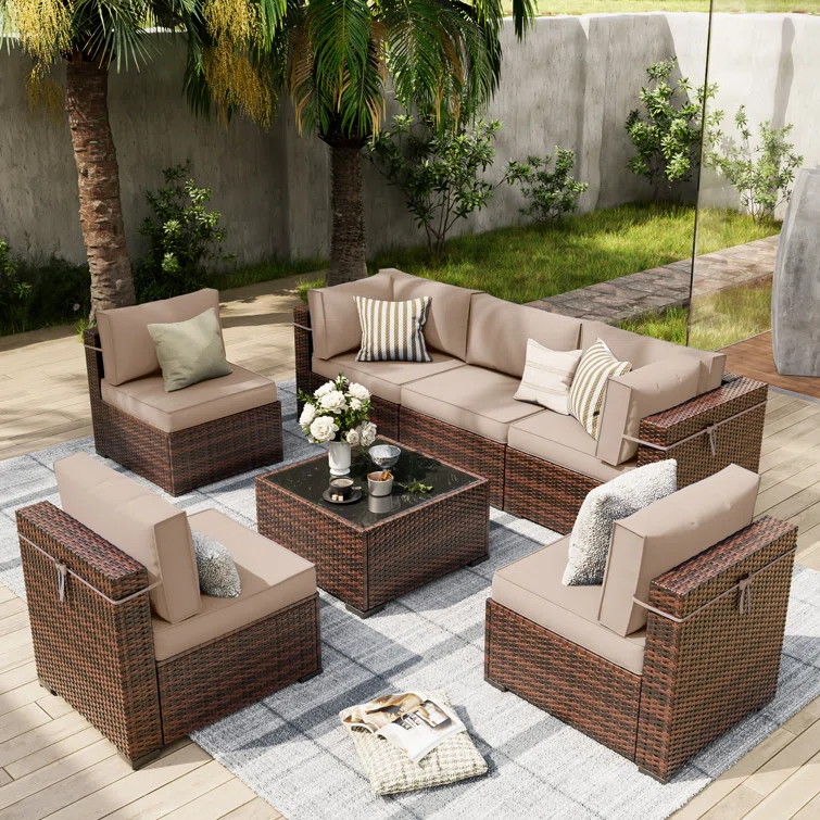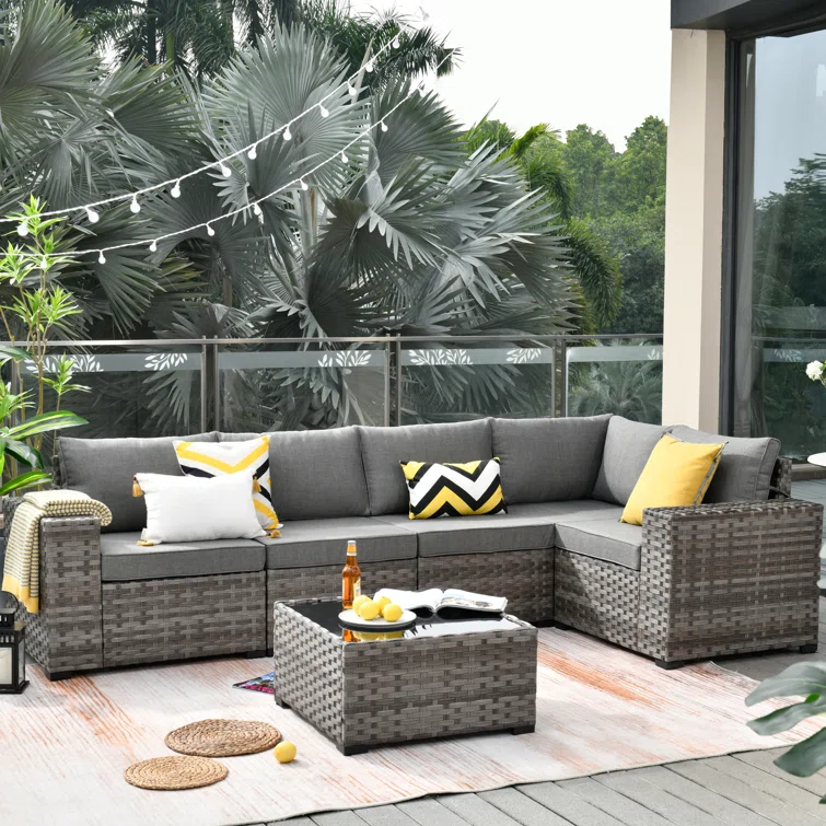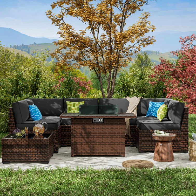 Rikuto 6-Person Slanted-Back Sectional Sofa With Fire Pit Table, Coffee Table