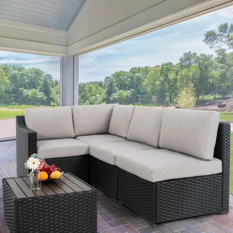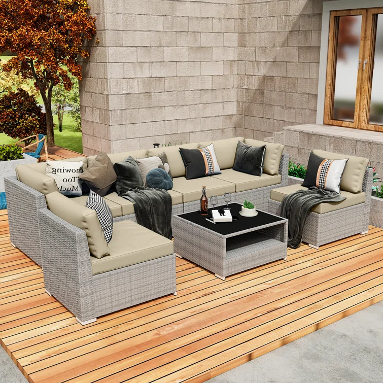 Lazaro Rattan Wicker Fully Assembled 6 - Person Seating Group with Sunbrella Cushions