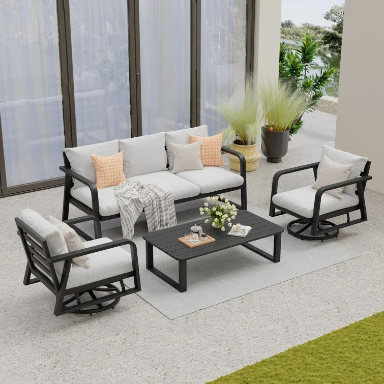 Ithnan 5 - Person Aluminum Silver Gray Outdoor Seating Group with Cushions
