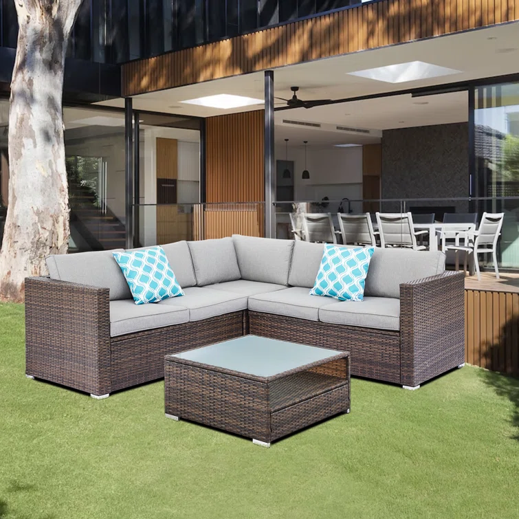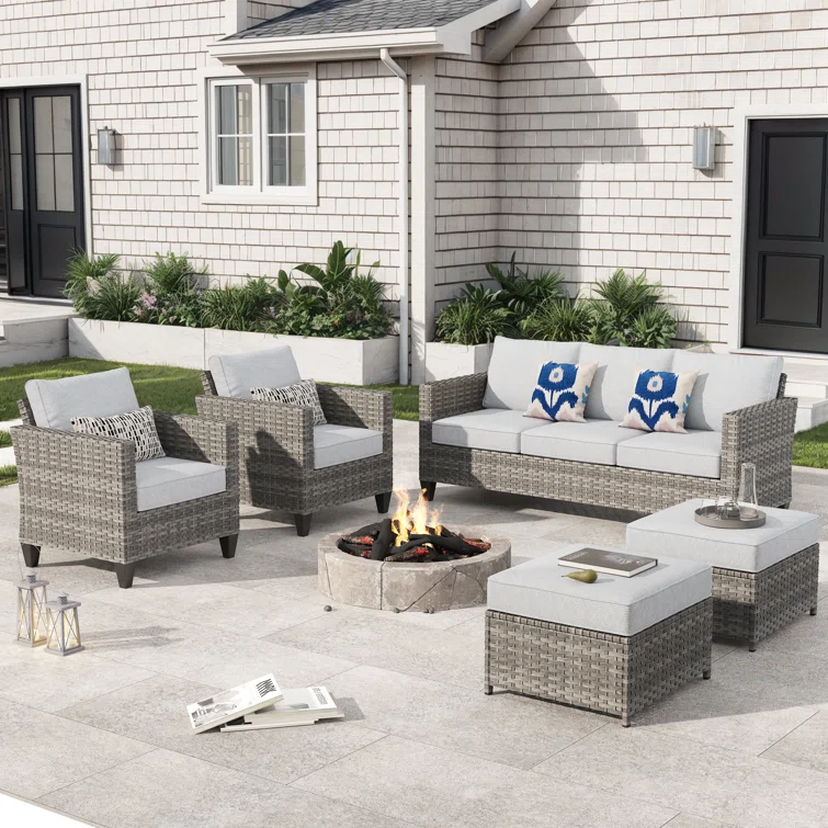 High-Density Polyethylene (HDPE) Wicker 5 - Person Seating Group with Cushions