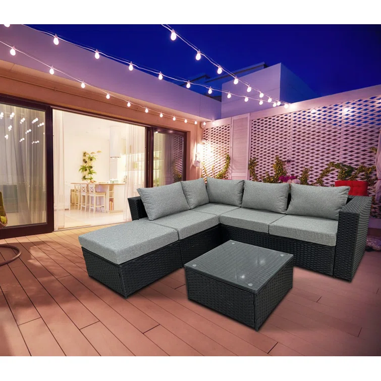 Nolensville Outdoor L-Shape Patio Conversation Metal 5 - Person Seat Group with Thick Cushion