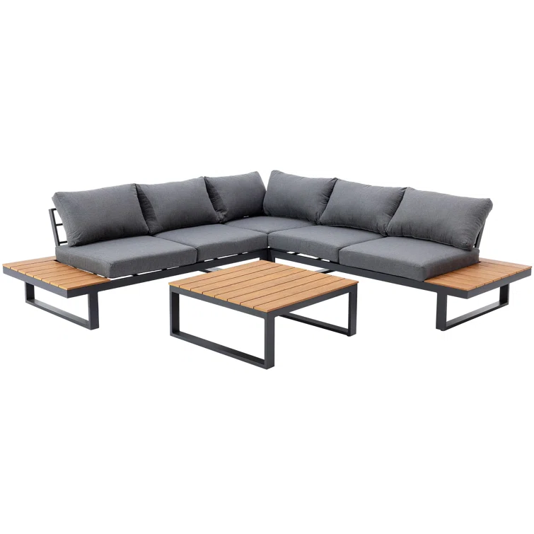Adeliah Aluminuml 5 - Person Outdoor Seating Group with Olefin Cushions and Coffee Table
