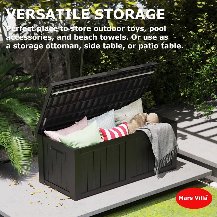 Resin Deck box, Outdoor Storage Container, Large Waterproof Storage Bench
