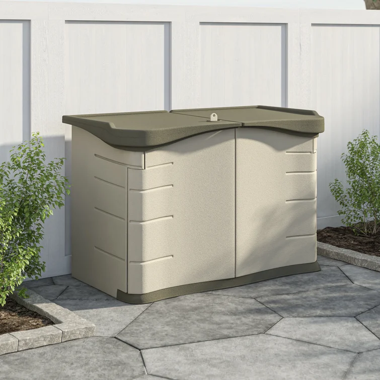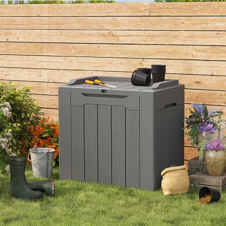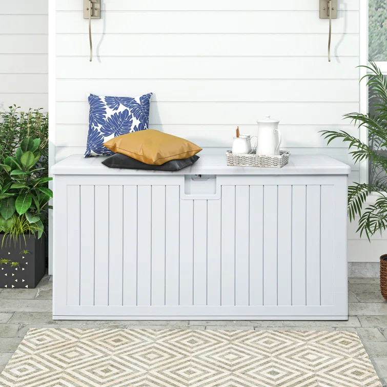 Resin Deck box, Outdoor Storage Container, Large Waterproof Storage Bench