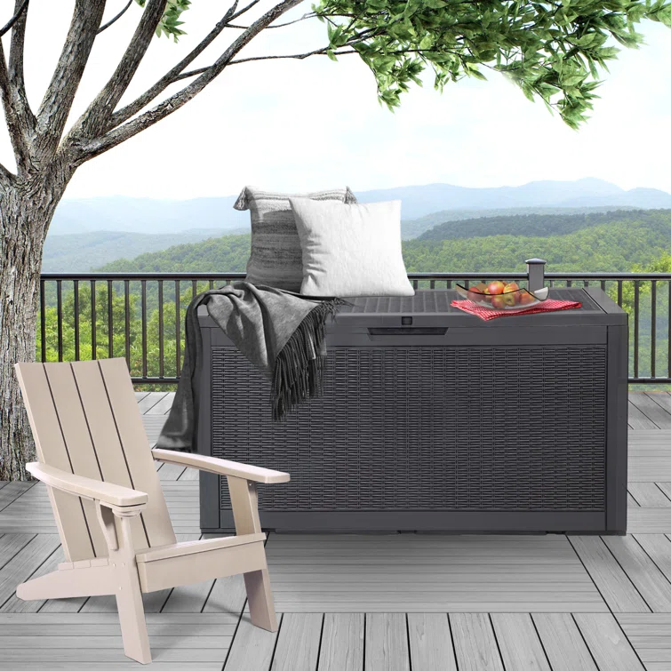 Lovoin 100 Gallons Gallon Water Resistant Resin Lockable Deck Box Without Cushion