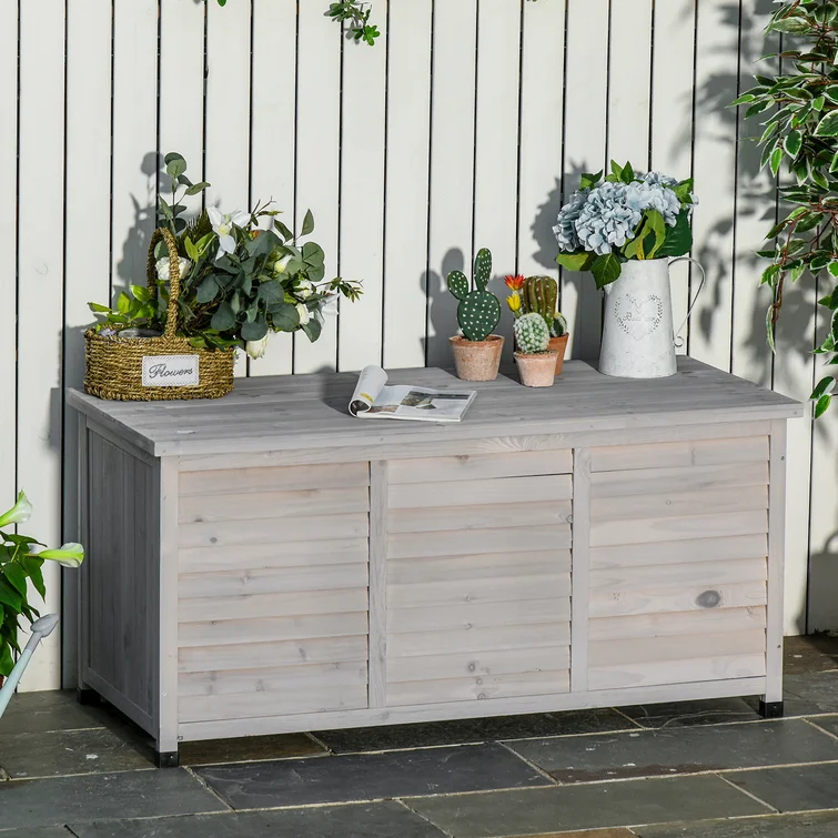 Outsunny 75 Gallon Water Resistant Fir Solid Wood Deck Box in Gray