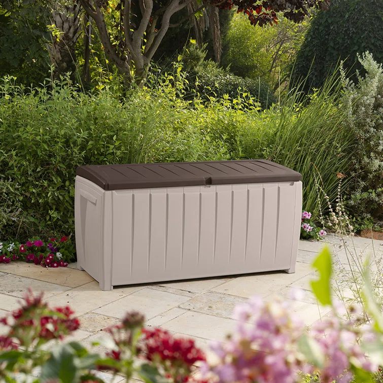 Keter Novel 90 Gallon Durable Resin Outdoor Storage and Organization Deck Box Ideal For Garden Patio Furniture and Supplies