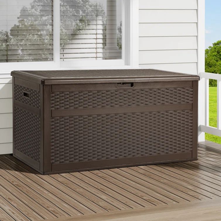 Keter Darwin 100 Gallon Durable Resin Outdoor Storage and Organization Deck Box Ideal For Garden Patio Furniture and Supplies, Graphite