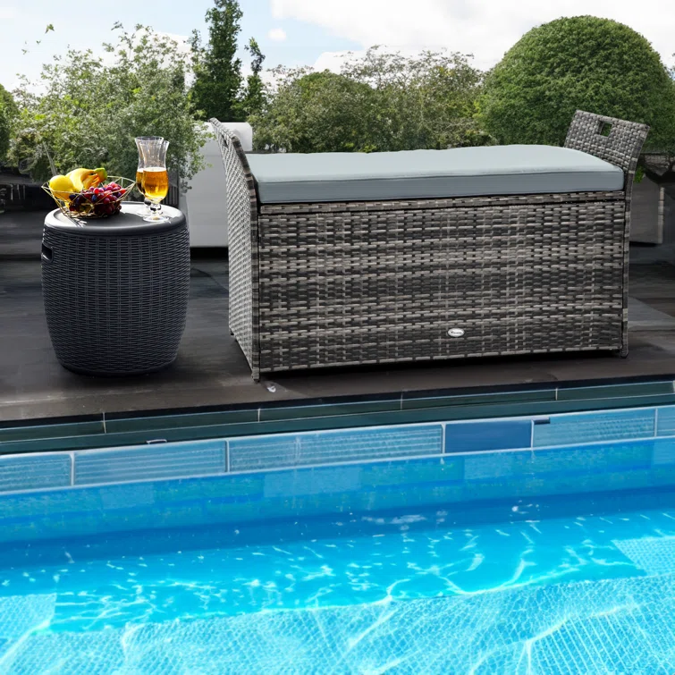 Outdoor Storage Bench Patio Rattan Storage Box with Cushion Poly Rattan