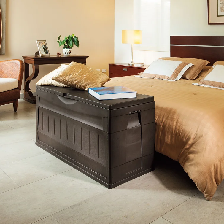 RIMAX 46.4'' W 83.21 Gallons Water Resistant Plastic Lockable Deck Box in Dark Brown
