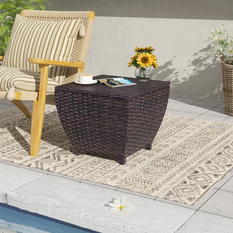 Beachcrest Home™ Anjenette 24'' W 104.73 Gallons Water Resistant Solid Wood Acacia Lockable Cabinet Deck Box