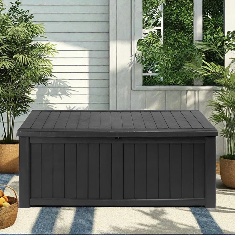Suncast 129 Gallon Water Resistant Resin Deck Box with Storage Seat in Light Taupe