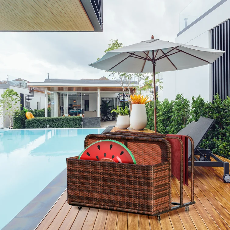 Patio 123 Gallon Water Resistant Plastic Lockable Cabinet Deck Box in Chocolate