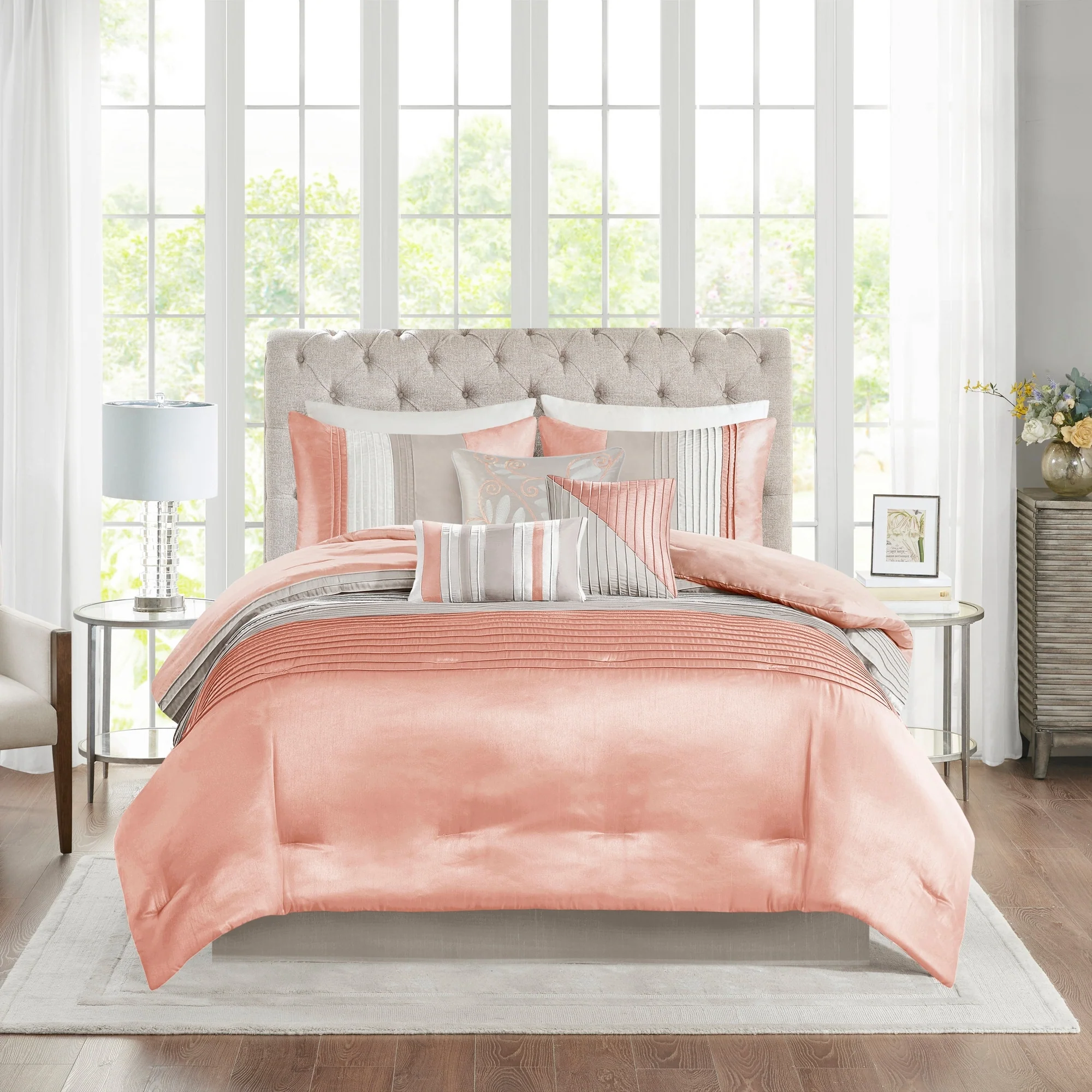 Madison Park Brianna Grey/ Peach Cotton Sateen Printed Comforter Set