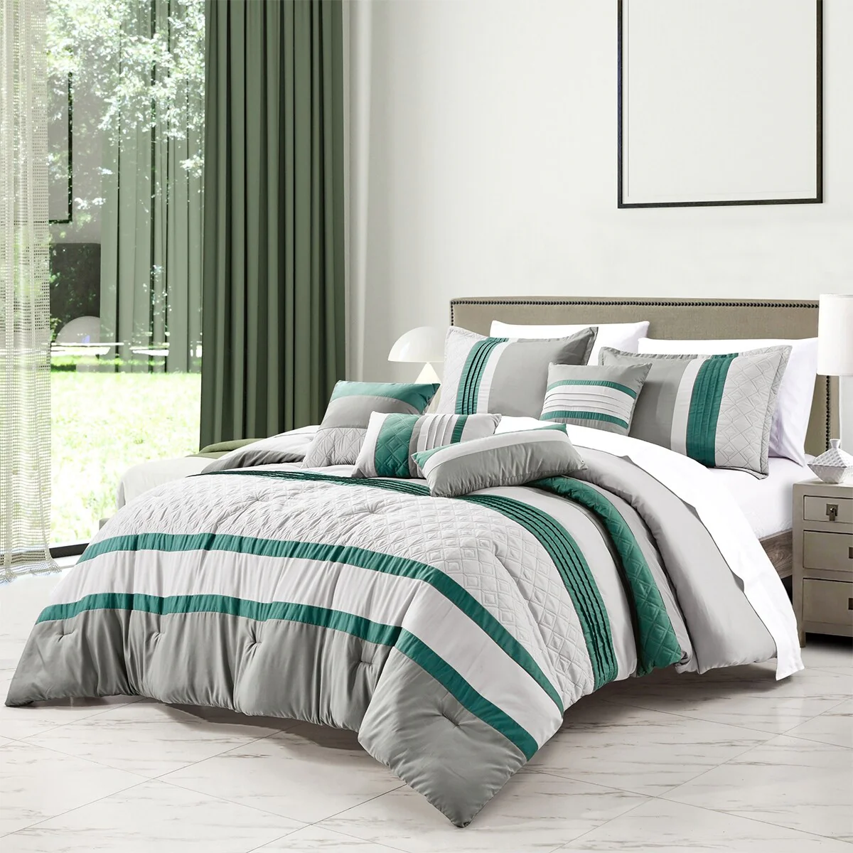 Wellco Bedding Comforter Set Bed In A Bag - 7 Piece Luxury Bedding Sets - Oversized Bedroom Comforters, Green