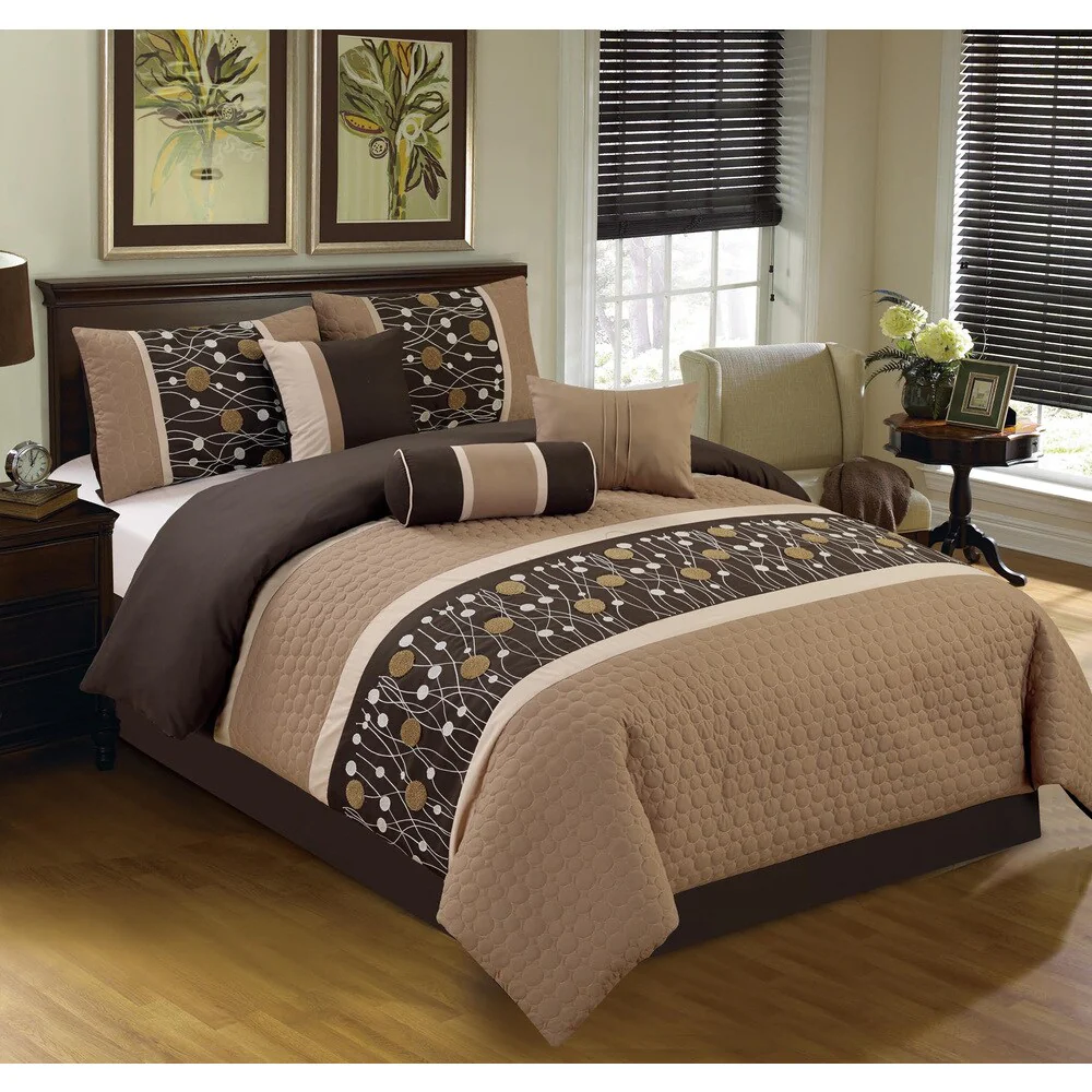 Chinensis Brown Embrodiery 7-piece Comforter Set