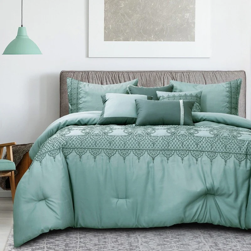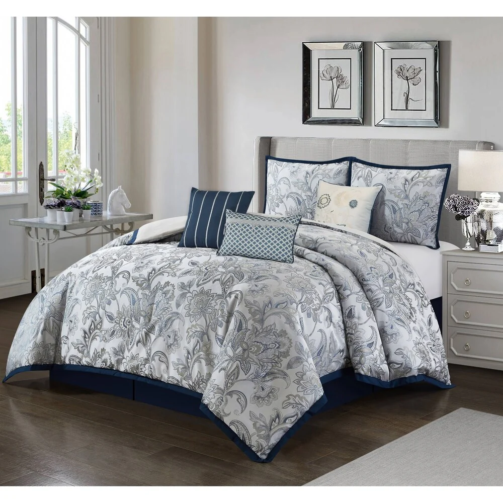 Wellco Bedding Comforter Set Bed In A Bag - 7 Piece - Luxury Oversized Comforters,Queen,King