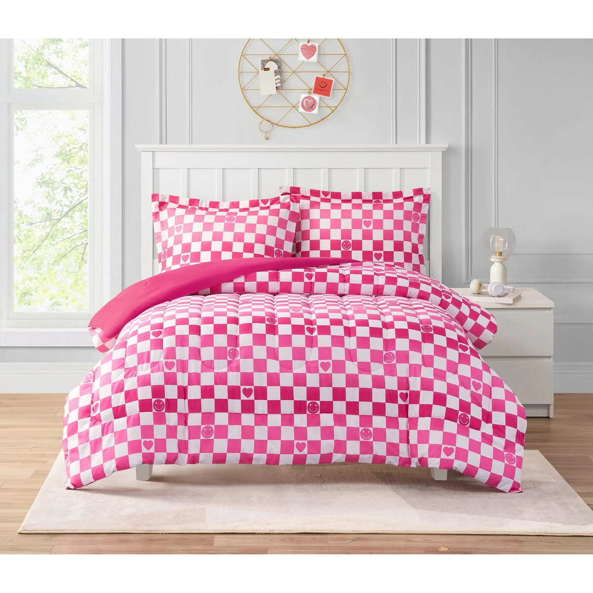 ALEX + BELLA Checkerboard Hearts Hot Pink Ultra Soft Microfiber Comforter Set
