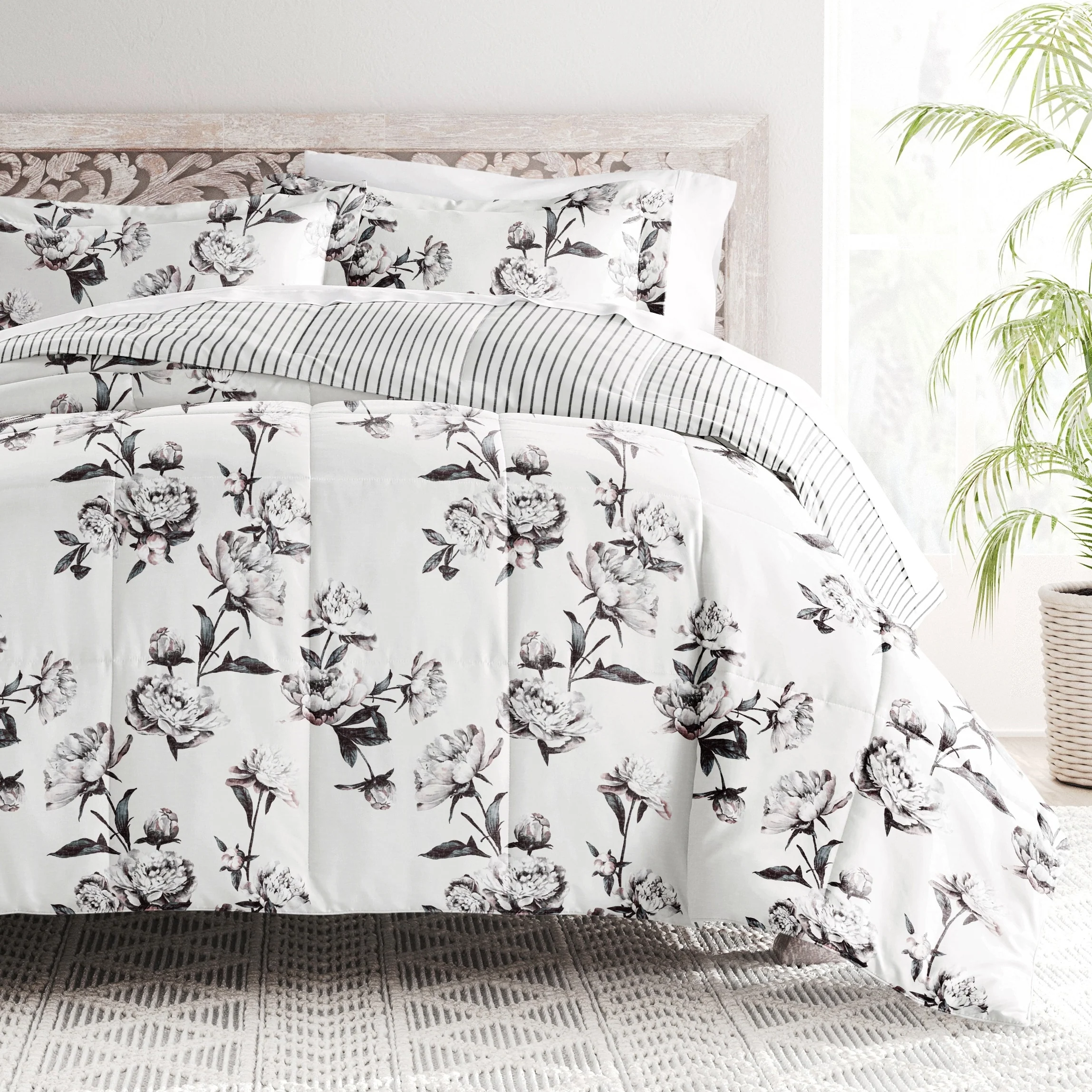 Bebejan Antique Flowers Ivory 100% Cotton 5-Piece Reversible Comforter Set