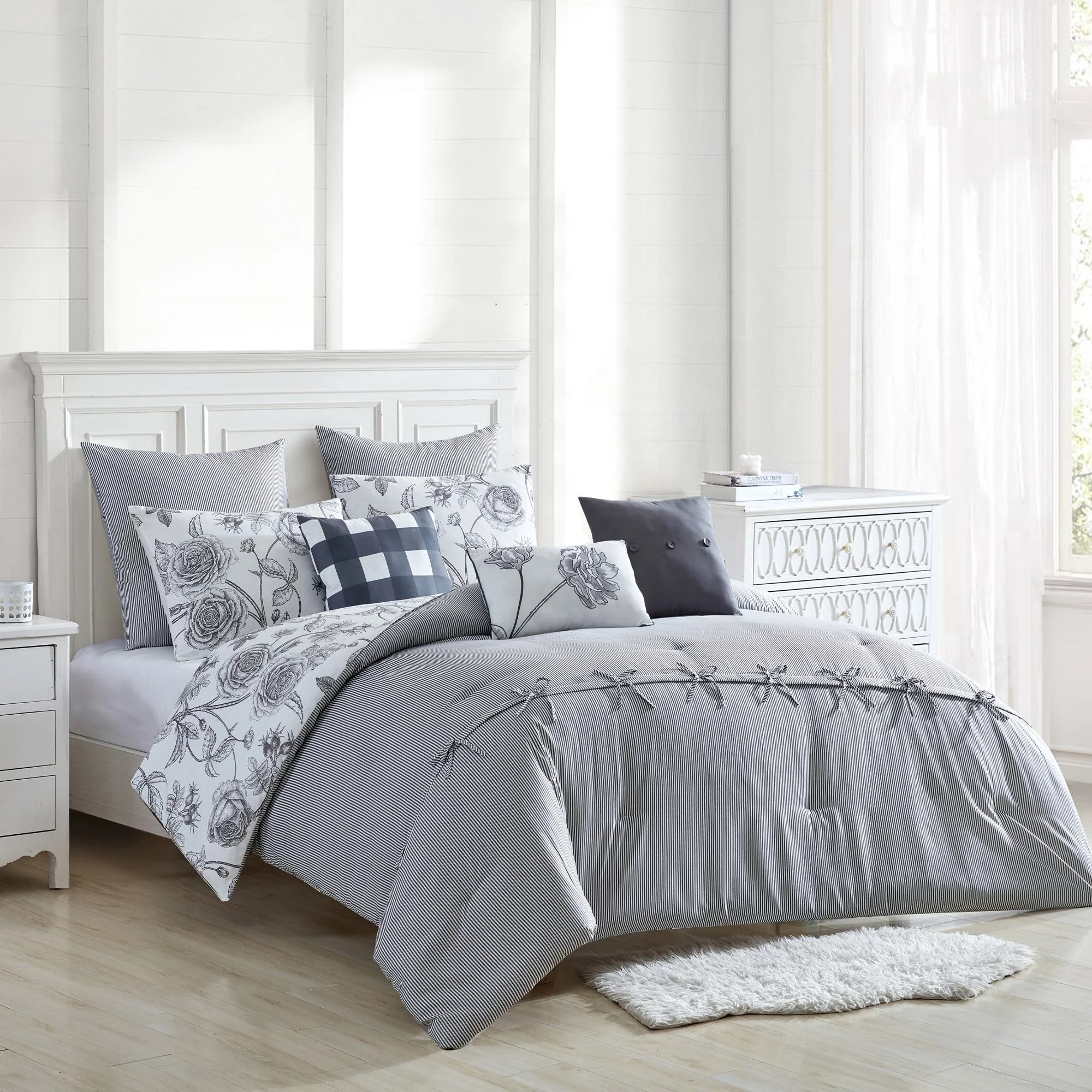 Shatex Kona 7 Pieces Ink Wash Flowers Bedding Comforter Set All-season Reversible Bed in a Bag