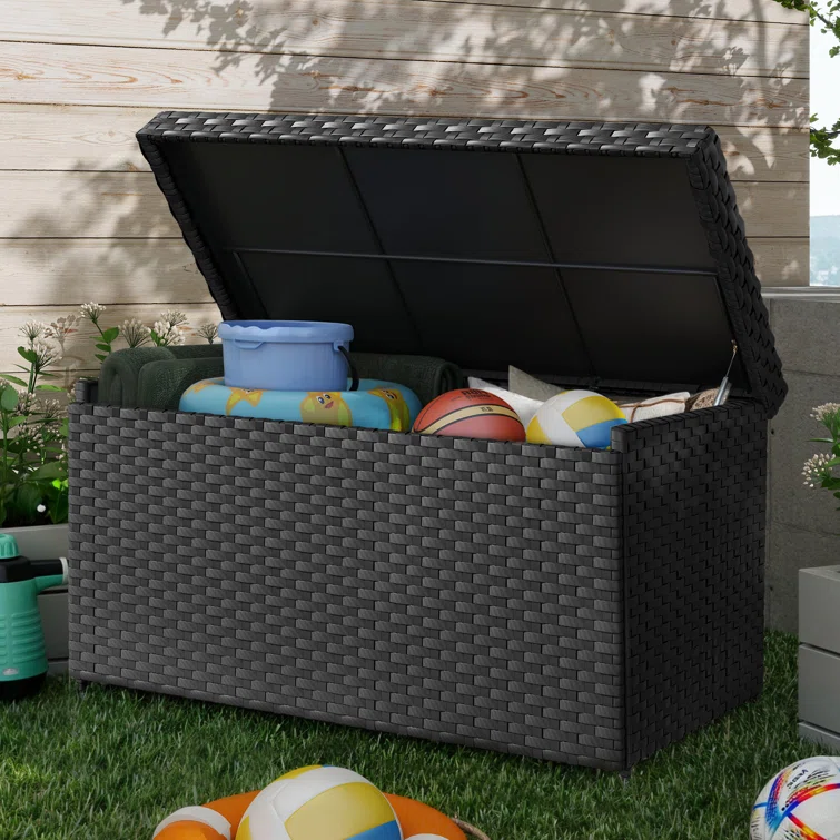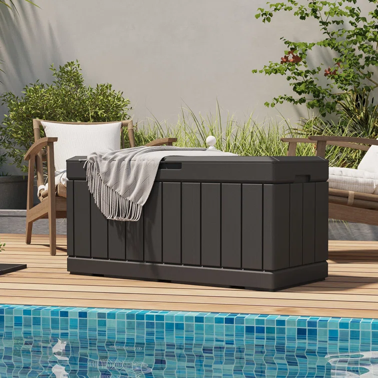 Lovoin 100 Gallons Gallon Water Resistant Resin Lockable Deck Box Without Cushion
