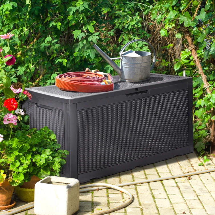 FRUITEAM 100 Gallons Gallon Water Resistant Resin Lockable Deck Box in Dark Gray