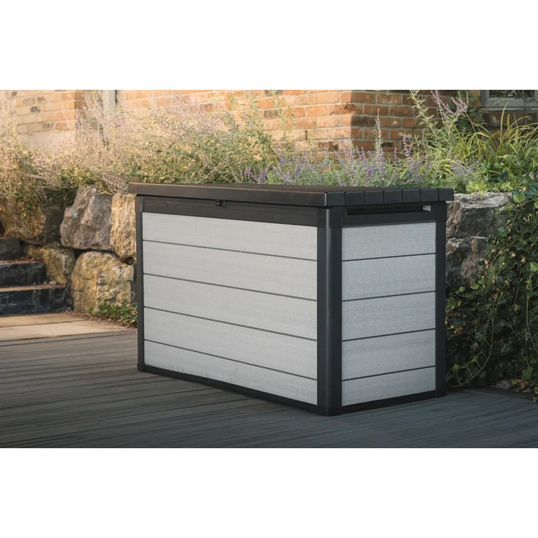 Keter Denali 200 Gallon Durable Resin Outdoor Storage and Organization Deck Box Ideal For Garden Patio Furniture and Supplies, Grey