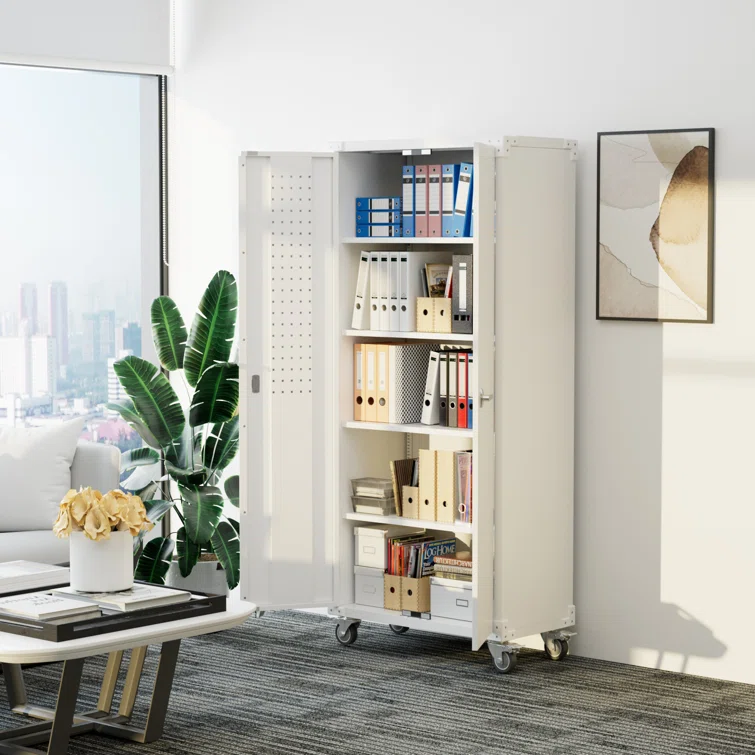 72" H x 31.5" W x 16.5" D Metal Storage Cabinet with Lockable Doors and Shelves