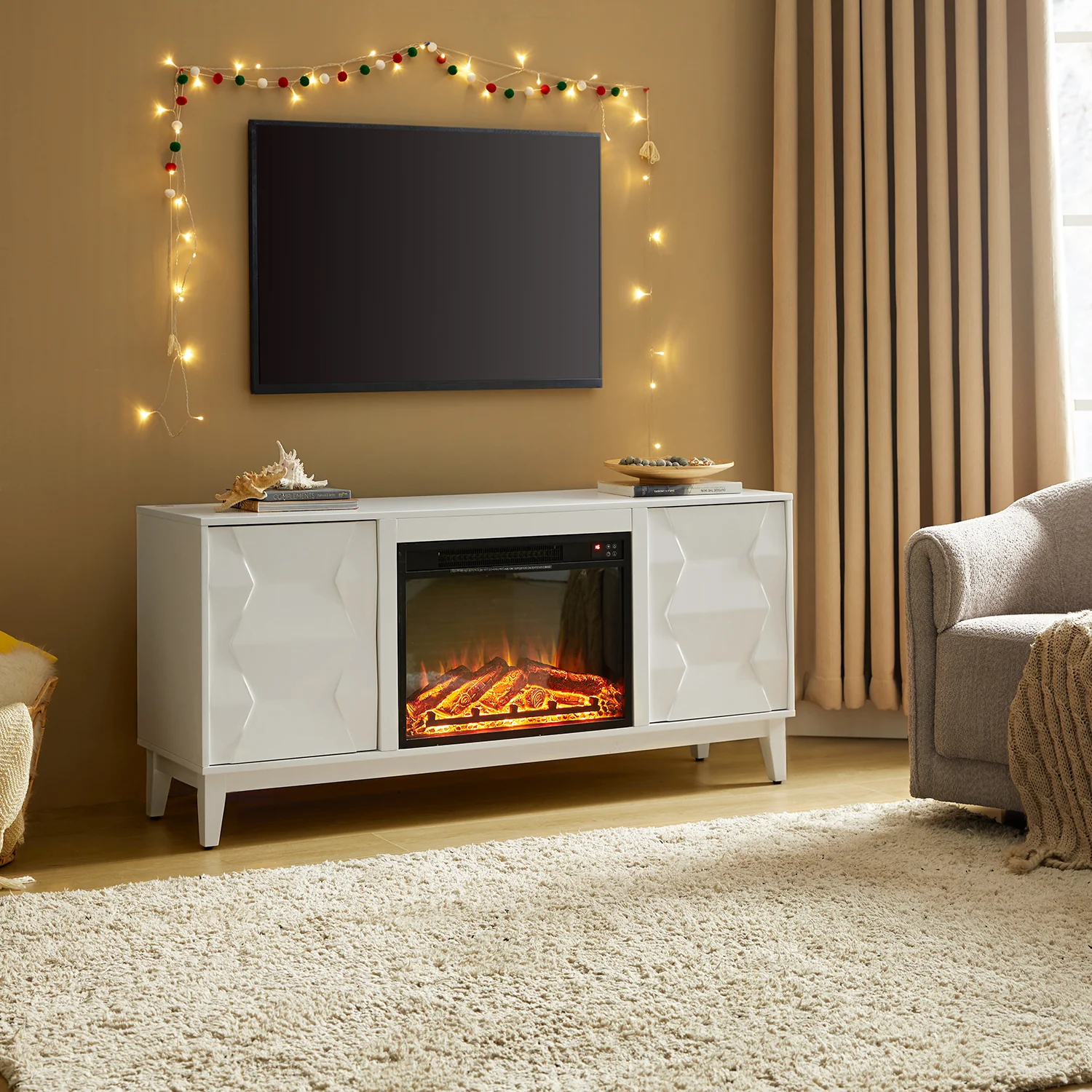 Kamu 58" Wide Traditional TV Stand With Electric Fireplace