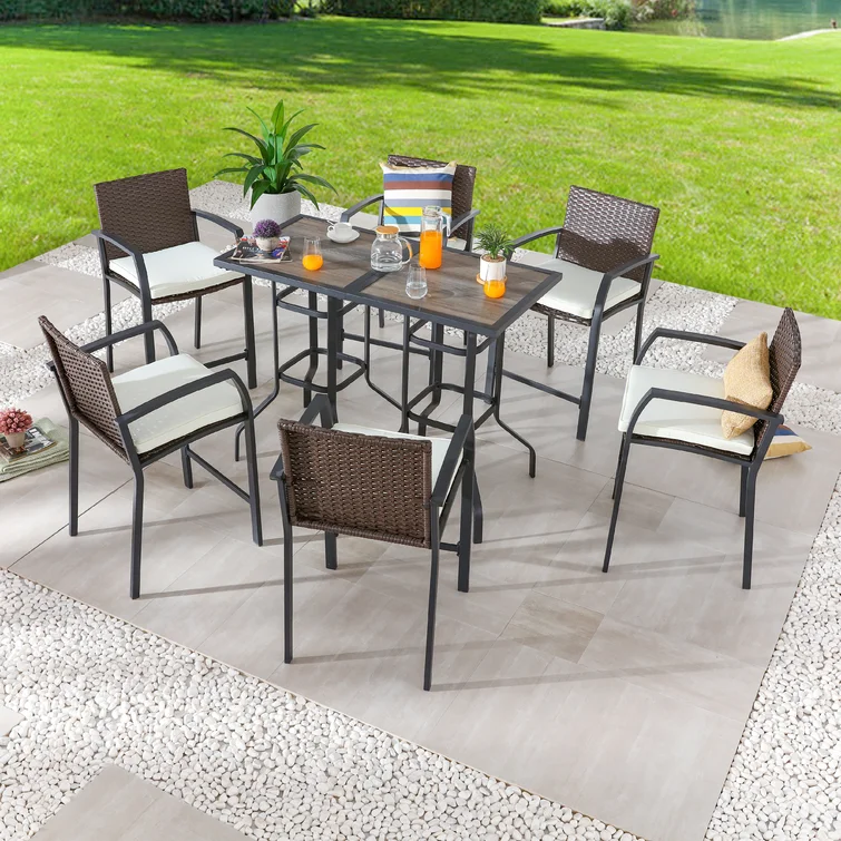 Mikenzie Traditions 7-Piece Dining Set in Sunset with 6 Padded Swivel Chairs and a Fire Pit Dining Table