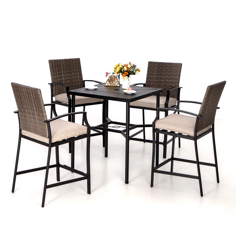 Zakis 5-Piece Outdoor Steel Dining Set with 4 Chairs, Patio Counter-height Bar Set, Cushions