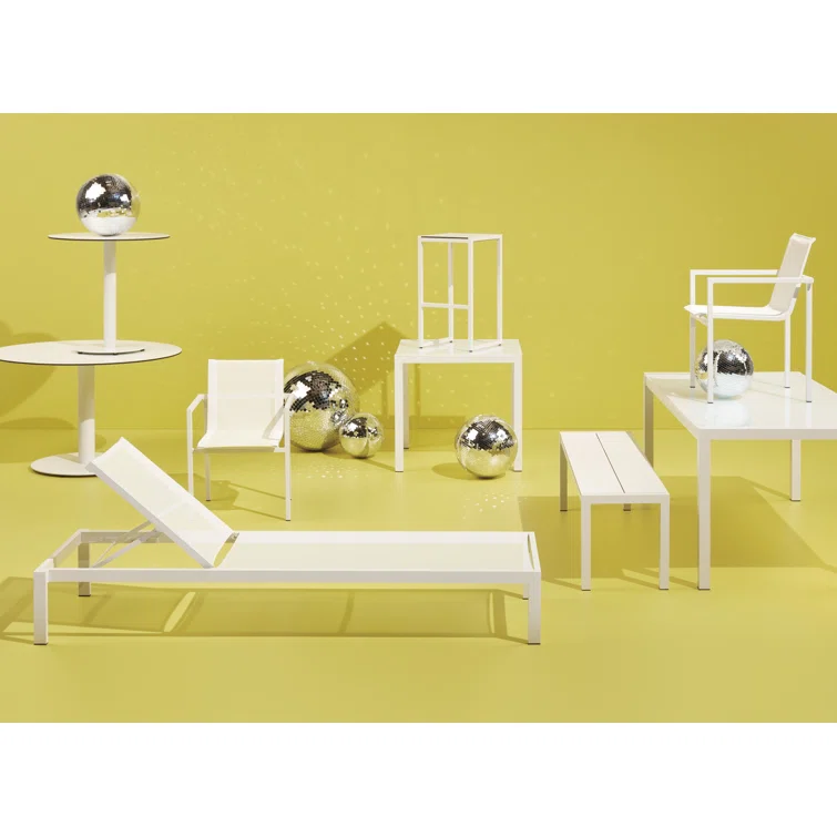 Aspen Sling 7 Piece Balcony Set with 6 High-Back Swivel Stools and Rectangular Table