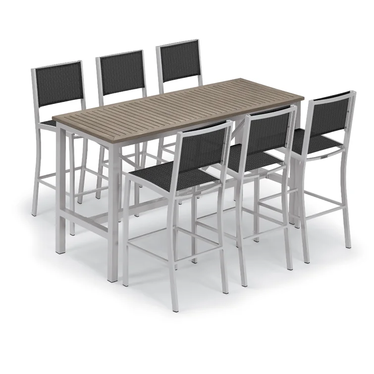 Travira 7-Piece Bar Table and Sling Bar Chair Rectangular Dining Set - 72"x30"