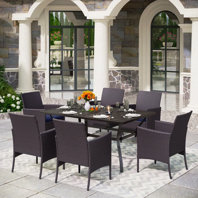 Alyah 7 Piece Bar Height Outdoor Patio Dining Set with Cushions