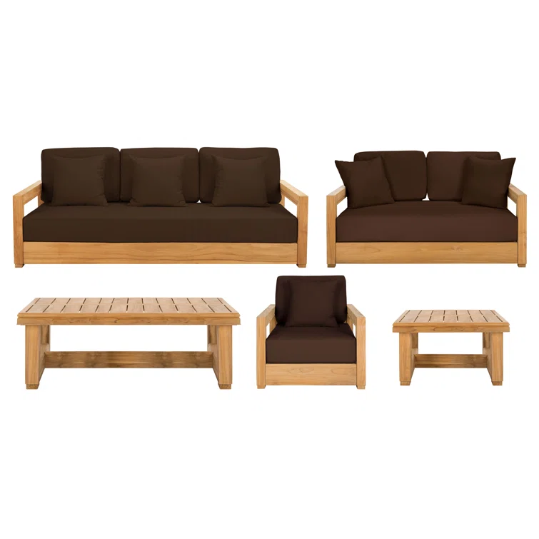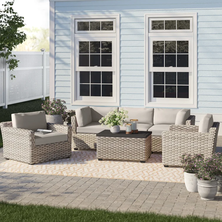Brandtley 4 Piece Sofa Seating Group with Cushions and Fire Pit Table