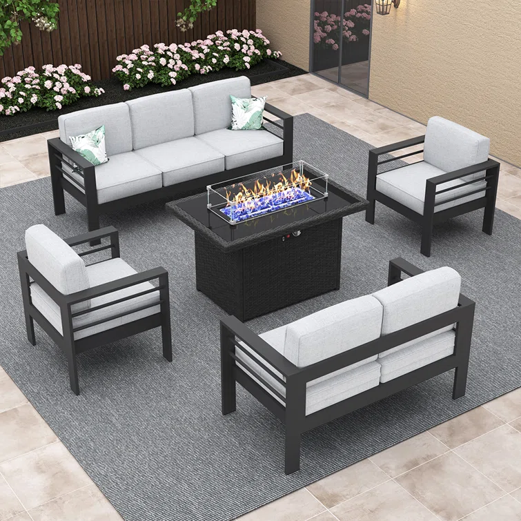 7 - Person Sofa Seating Group With Cushions And Fire Pit Table