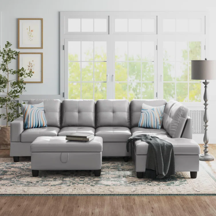 Jessalee 4 - Piece Velvet Sectional Sofa with Ottoman