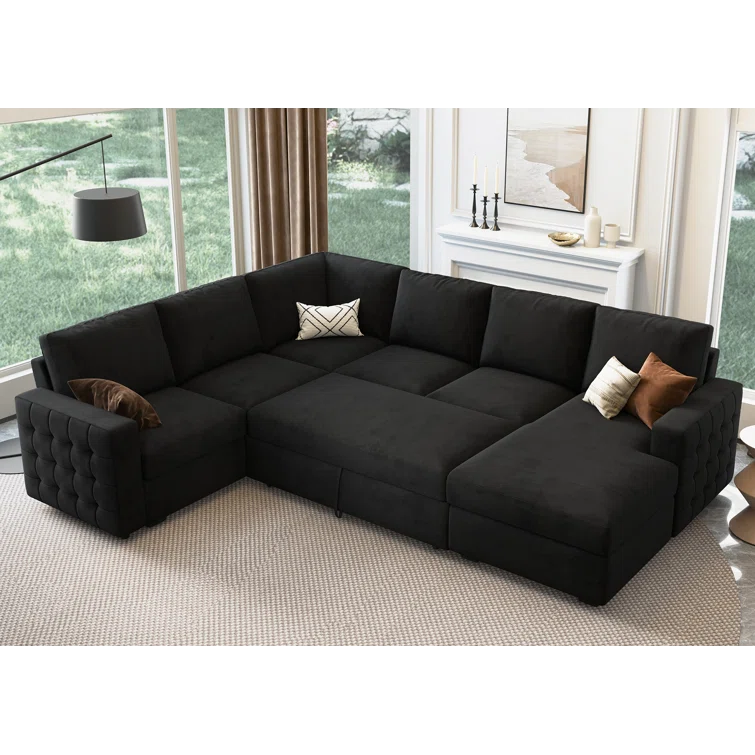 U-Shaped Sectional Sofa Bed Pull Out Sleeper Couch With Storage Chaise