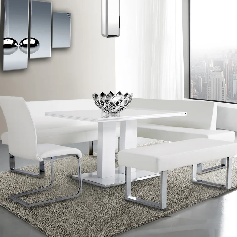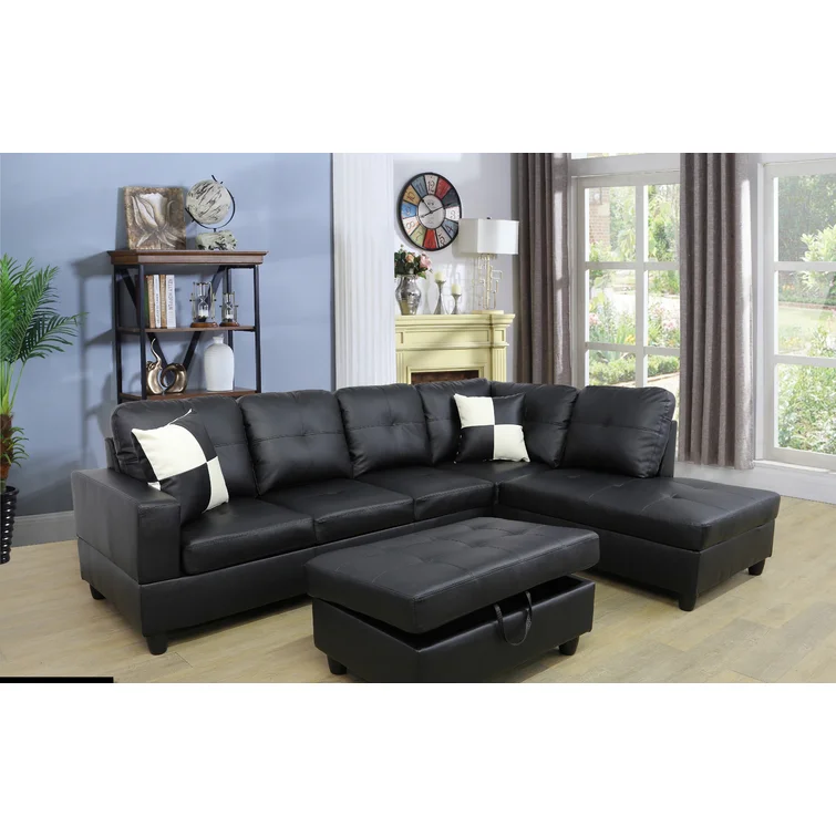Darcie 2-Piece Contemporary Corner Sofa in Faux Leather and Chrome Metal