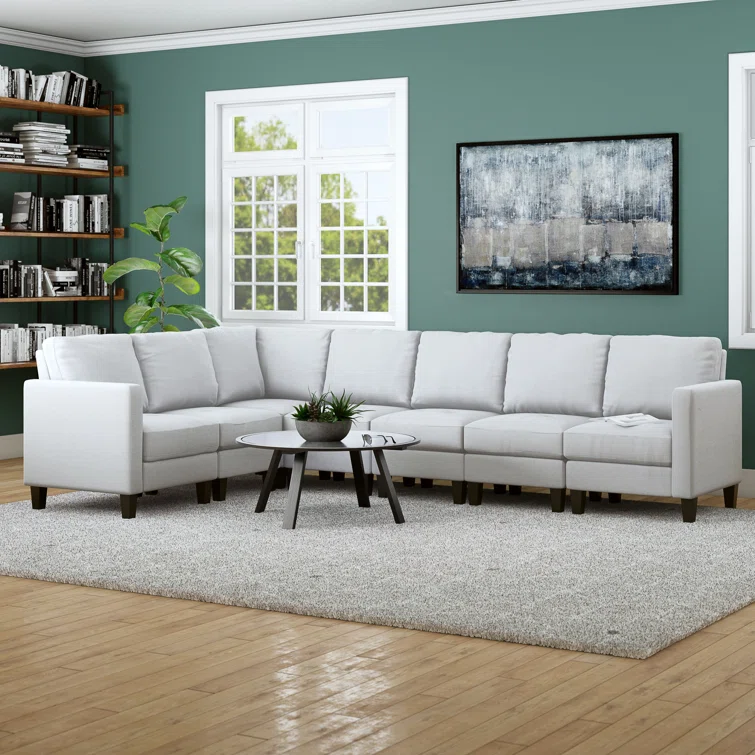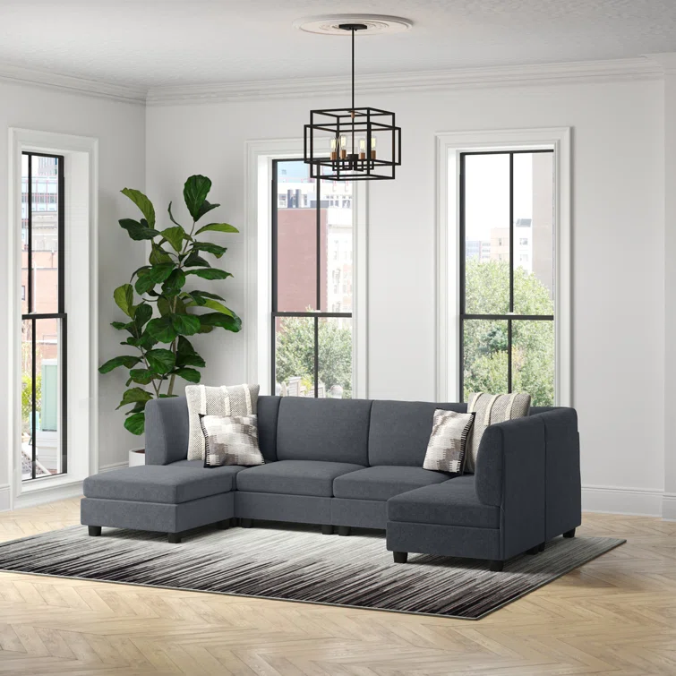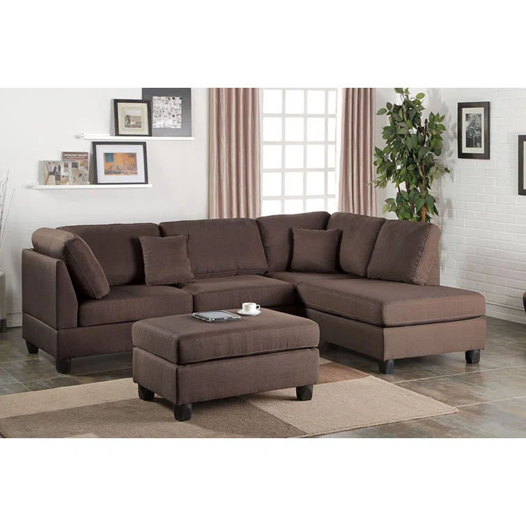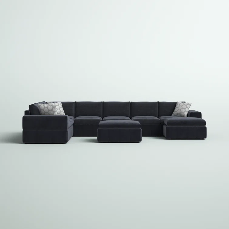Zaida 104" Wide Velvet Reversible Modular Sofa & Chaise with Ottoman