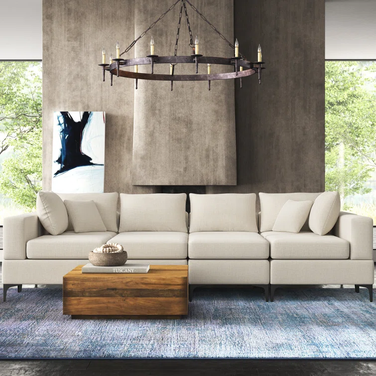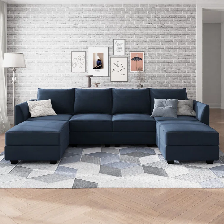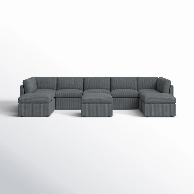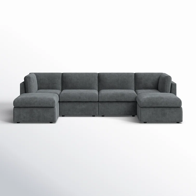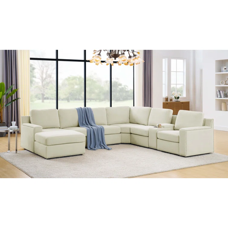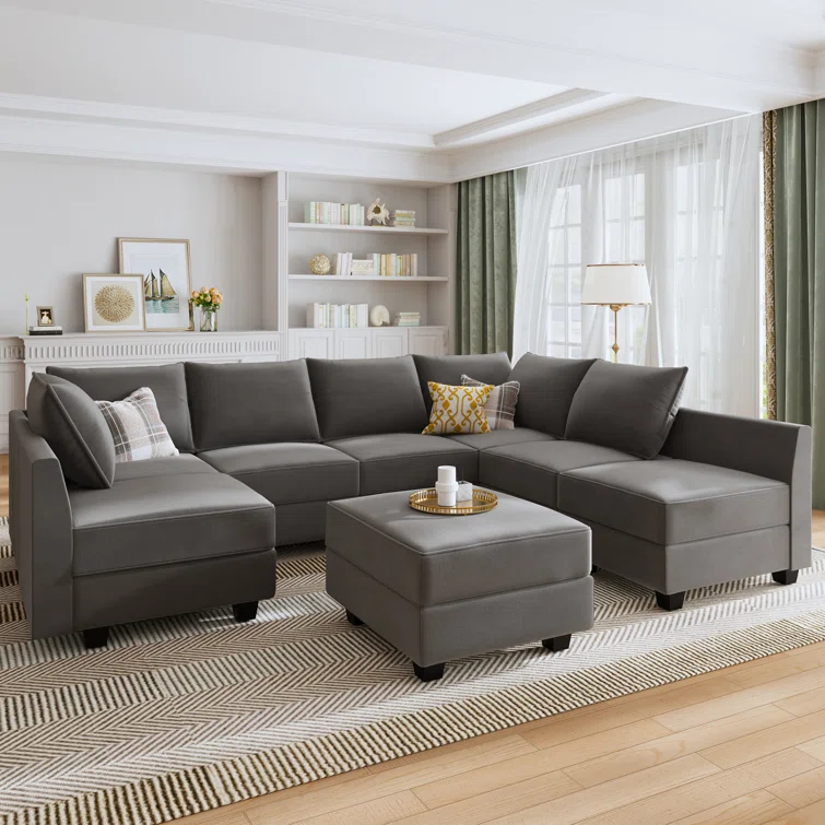 Tremee Modular Corner Sectional Velvet Sofa & Chaise with Ottoman